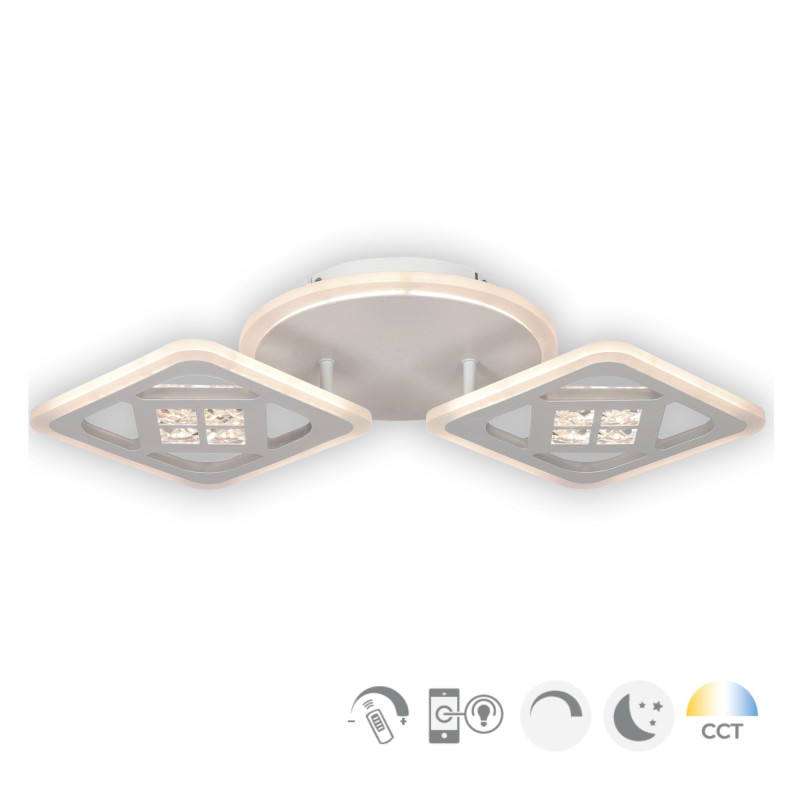 Plafoniera LED inteligenta Maros PL2 KL151042 va ofera controlul deplin asupra intensitatii, temperaturii de culoare, consumului energetic si al cantitatii de lumina emise in incapere. Puteti realiza toate aceste actiuni prin intermediul unui smarthphone, cu ajutorul aplicatiei intuitive si usor de folosit Lamp Smart Pro ce se poate instala de pe Google Play si App Store.
