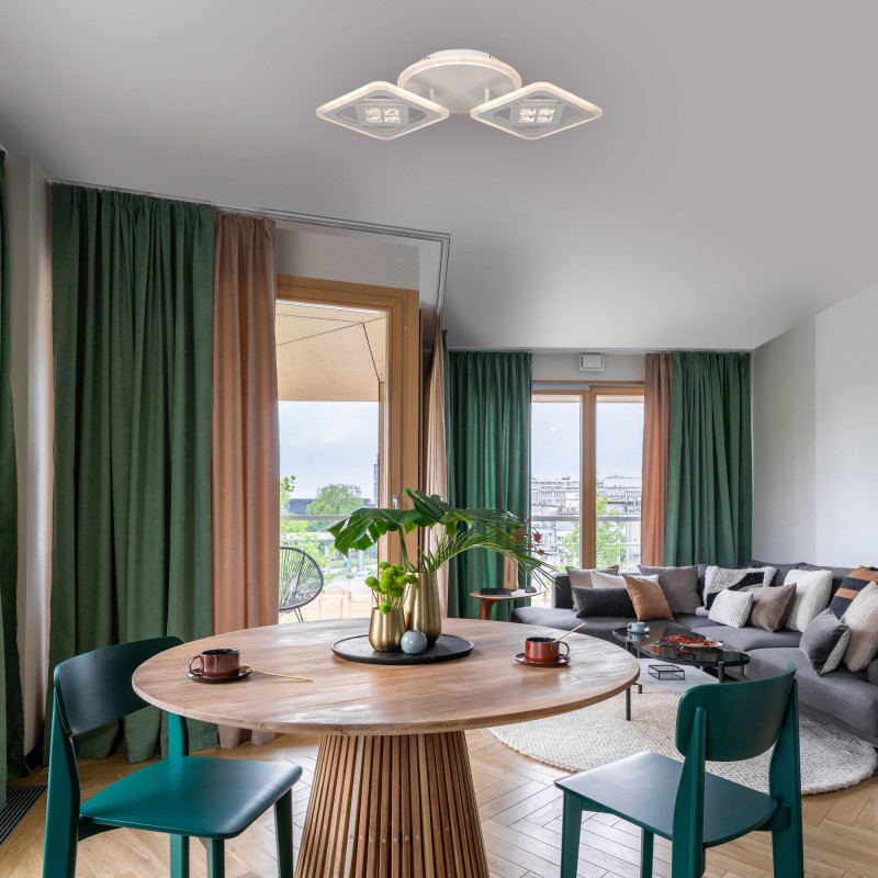 Sursele genereaza o lumina calda (3000 K) / neutra (4000 K) / rece (6500 K). Intensitatea luminoasa poate fi modificata atat din telecomanda, cat si prin aplicatia Lamp Smart Pro. Aceasta este livrata cu telecomanda (bateriile nu sunt incluse) cu urmatoarele functii: ON / OFF, reglarea intensitatii luminoase, setarea temperaturii de culoare a luminii, mod lumina veghe, temporizare Datorita dimensiunilor bine proportionate 250 x 530 x 90 (latime x lungime x inaltime) plafoniera Maros este o alegere potrivita ca si corp de iluminat in living, bucatarie sau dormitor. Cu structura metalica de culoare alba si un abajur din acril alb, acest corp de iluminat va ilumina in mod eficient si cu stil, incadrandu-se cu usurinta in orice spatiu.