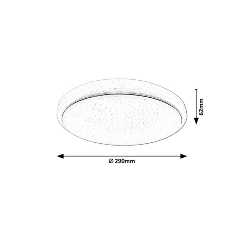 Diametrul plafonierei Trevor este de 290mm, distanța față de tavan de doar 62mm.