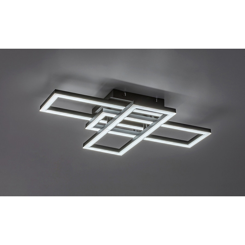 Lampa de tavan Rabalux Mereni este alegerea perfectă pentru cei care apreciază lămpile LED cu un design cu adevărat modern și creativ. Acest model inteligent atrăgător este realizat din metal negru cu un abajur din plastic alb. Corpul lămpii este format din trei elemente dreptunghiulare care se intersectează, iar lampa poate fi montată pe tavan cu ajutorul unei baze decorative pătrate. Are o sursă de lumină LED încorporată, a cărei temperatură de culoare poate fi ajustată printr-un întrerupător de perete sau telecomandă. În plus, te poți bucura de avantajele reglării luminozității, funcțiilor de memorie, temporizator și lumină de noapte, toate acestea putând fi operate prin telecomandă. Acest model versatil este recomandat în principal pentru sufragerii, săli de mese și dormitoare moderne. Datorită tehnologiei LED integrate, lampa se caracterizează printr-o funcționare eficientă din punct de vedere energetic și o durată lungă de viață.