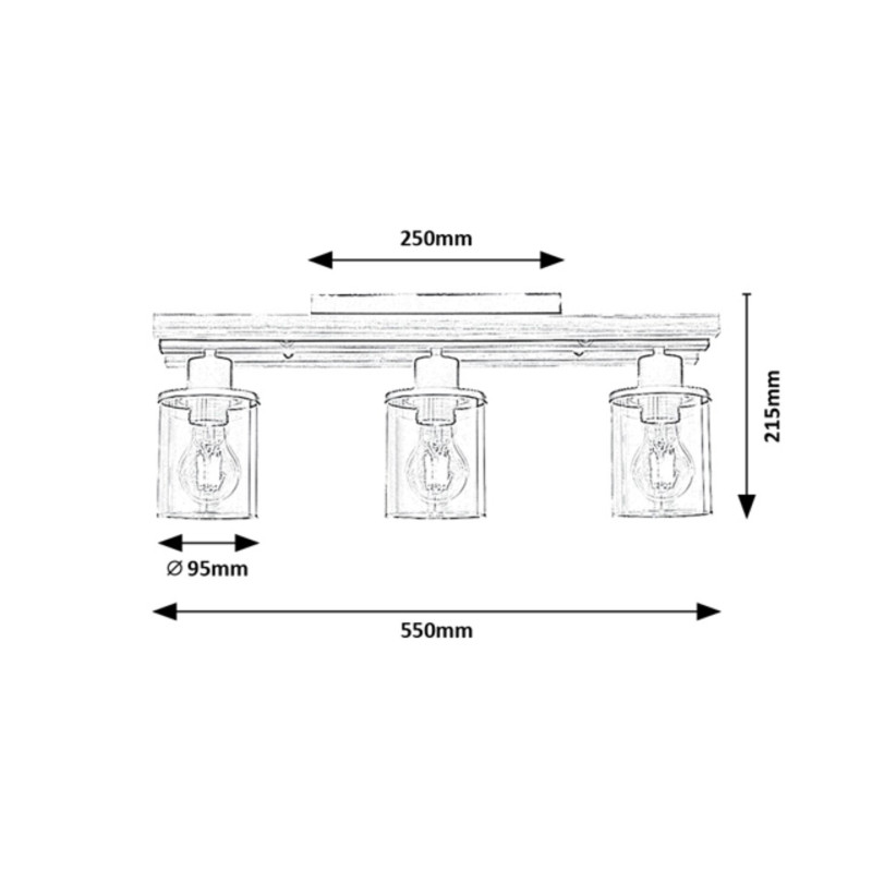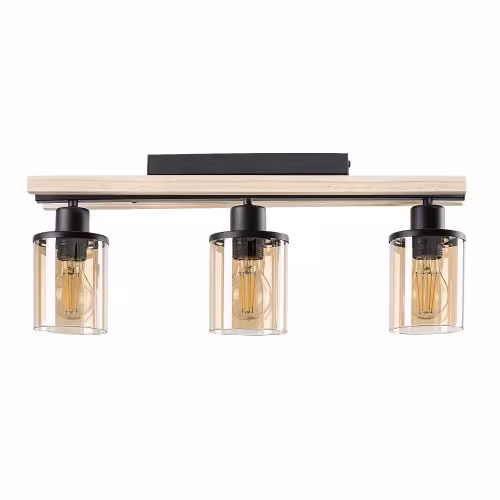 Plafoniera triplă Niylah în stil modern poate fi un accesoriu confortabil pentru camera de zi. Lampa neagră din metal și lemn este completată de abajururi cilindrice de culoarea chihlimbarului, care adaugă tonuri calde luminii emise din interiorul lămpilor. Niylah poate fi montat pe tavan cu ajutorul unei baze decorative dreptunghiulare și poate fi utilizat cu trei surse de lumină, fiecare cu o putere de până la 25 W. Tipul de socluri este E27. Capetele lămpilor sunt dispuse în rând, unul lângă altul, pe bara de susținere, care este căptușită cu lemn pe ambele părți. Acest model se potrivește cel mai bine cu surse de lumină albă caldă, care ajută la crearea unei atmosfere familiale și intime în cameră. Deoarece abajururile permit ca sursele de lumină să fie vizibile, merită să folosiți becuri estetice de o formă diferită de cea obișnuită. Dimensiunile plafonierei Niylah sunt următoarele: lățime 550 mm, diametrul fiecărui abajur 95 mm, distanța față de tavan 215 mm, adâncime de instalare 250 mm. Acest model se livrează fără surse de lumină.