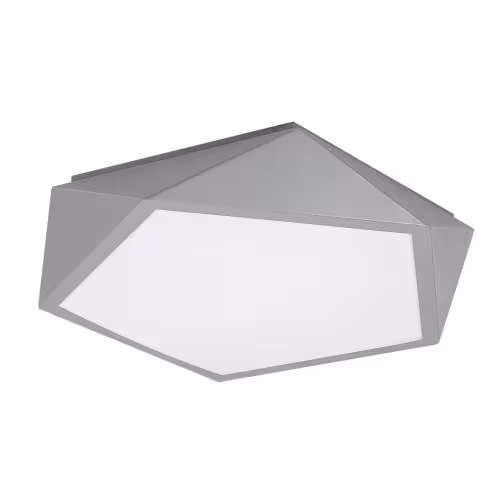 Plafoniera Raffa, în stil modern și cu dimensiuni mari, este recomandată în primul rând pentru camera de zi sau dormitor. Acest model cu o formă de bază pentagonală și culorile sale neutre, poate fi bine integrat în aranjamentul multor case moderne. Lampa din metal de culoare gri este completată de un abajur din plastic alb, în timp ce designul lui Raffa este pus în valoare de forma unghiulară, adeseori întreruptă a corpului lămpii. Lampa are o sursă de lumină LED încorporată aparținând clasei energetice G, cu o putere de 30 W, o luminozitate de 1000 de lumeni cu abajur, 1800 de lumeni fără abajur. Cu o temperatură de culoare de 3000 K, sursa de lumină are o durată de viață extraordinară: timp de 50 000 de ore ne servește cu lumina sa albă caldă. Acest tip de lumină ajută la crearea unei atmosfere confortabile și primitoare în cameră, relaxând în același timp ochii, fiind ideal pentru relaxare și deconectare. Diametrul plafonierei Raffa este de 400 mm, distanța față de tavan fiind de 80 mm.