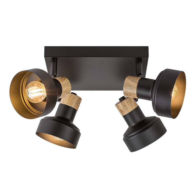 Rabalux Saskia spot de tavan cu 4 becuri este recomandat în principal iubitorilor stilului nordic. Lampa este realizată din metal și lemn, în nuanțe de negru și stejar. Tonul elegant și întunecat al corpului de iluminat și al bazei decorative este întrerupt doar de capacele din lemn de stejar, adăugând o notă naturală designului lămpii. Interiorul abajururilor este auriu, ceea ce se armonizează bine cu nuanța naturală a lemnului. Lampa poate fi fixată pe tavan prin intermediul unei baze decorative pătrate. Aceasta este completată de patru capete de lampă rotative, care permit distribuirea luminii în cameră conform nevoilor tale. Lampa de tavan este alegerea ideală pentru living, dormitor sau birou. Poate fi utilizată cu patru becuri, fiecare cu o putere de până la 15 W. Tipul de soclu este E14. Spotul este livrat fără surse de lumină.