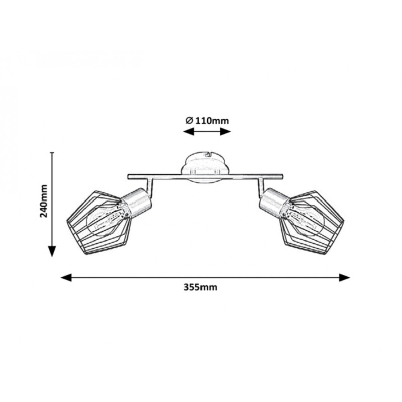 Spotul dublu Belano în stil industrial va fi o piesă de mobilier cu stil în livingul, dormitorul sau biroul Dvs moderne. Lampa de perete negru mat, din metal, devine specială mulțumită abajururilor tip grilă și poate fi fixată cu ajutorul unei baze decorative rotunde. Belano poate fi folosită cu două becuri, fiecare de până la 40W, tip de soclu E27. Prin abajururile care arată simbolic ca niște cuști, lumina spoturilor curge nestingherită. Dacă doriți să sporiți atmosfera intimă, plăcută din cameră, alegeți surse luminoase cu temperatura de culoare alb cald pentru această lampă. Dimensiunile spotului dublu Belano sunt după cum urmează: lățime 355 mm, înălțime 210mm, distanța de la tavan 240mm, diametrul instalației de 110mm. Acest model se livrează fără surse luminoase.