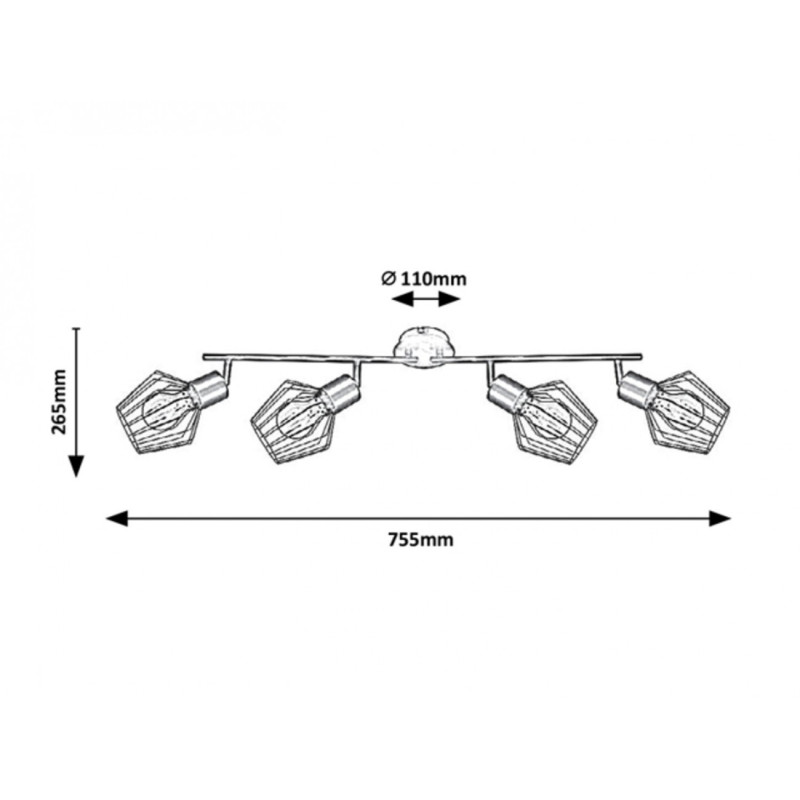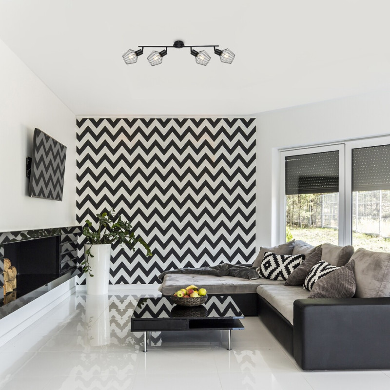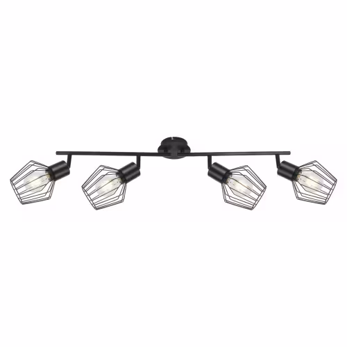 Spotul Belano cu patru becuri în stil industrial va fi o piesă de mobilier cu stil în livingul, dormitorul sau biroul Dvs moderne. Lampa de perete negru mat, din metal, devine specială mulțumită abajururilor tip grilă și poate fi fixată pe tavan cu ajutorul unei baze decorative mici, rotunde. Belano poate fi folosită cu patru becuri, fiecare de până la 40W, tip de soclu E27. Prin abajururile care arată simbolic ca niște cuști, lumina spoturilor curge nestingherită. Dacă doriți să sporiți atmosfera intimă, plăcută din cameră, alegeți surse luminoase cu temperatura de culoare alb cald pentru această lampă. Dimensiunile spotului Belano cu patru becuri sunt după cum urmează: lățime 755mm, distanța de la tavan 265mm, diametrul instalației de 110mm. Acest model se livrează fără surse luminoase.