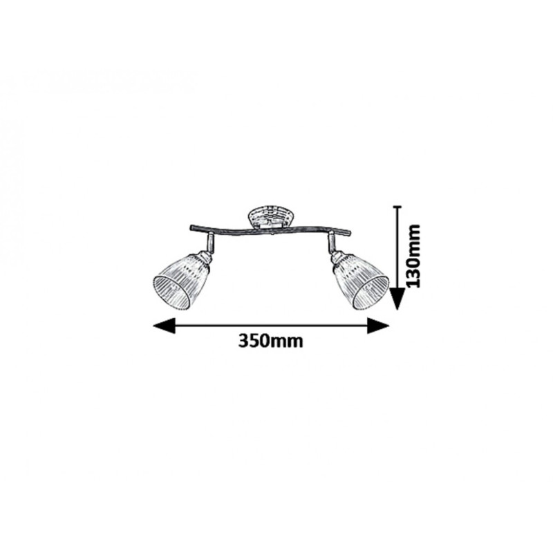 Lampa spot dublă Martha se recomandă fanilor stilului clasic. Corpul metalic arcuit al lămpii de tavan realizate în culoare bronz antichizat este completat de două abajururi cilindrice cu o ușoară deschidere în partea de jos, respectiv o placă decorativă rotundă. Datorită capului reglabil, lumina lămpii poate fi direcționată în funcție de preferințe. Recomandăm acest model îndeosebi în sufragerie, respectiv pe hol. În funcție de dorințe, putem alege surse de lumină cu culoare caldă sau naturală. Lampa spot dublă poate fi folosită cu două bucată sursă de lumină de maximum 40 W, tip de soclu E14. Dimensiunile lămpii Martha sunt: lățime 350 mm, distanța de la tavan 130 mm. Acest model este livrat fără bec.