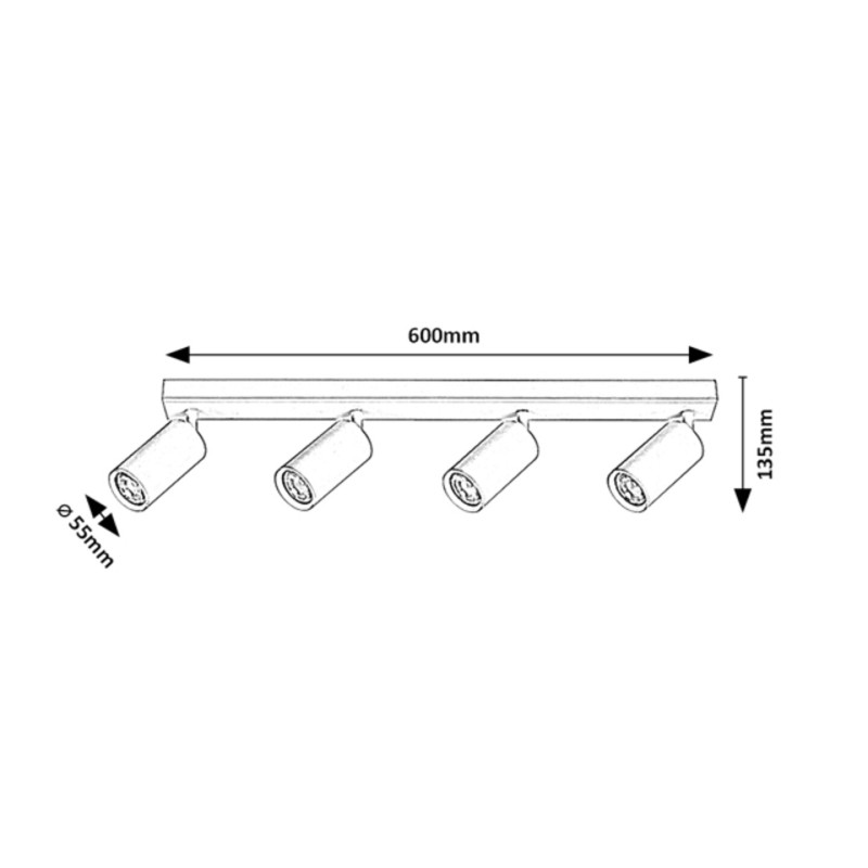 Spotul individual Solo cu 4 becuri în stil minimalist va fi o piesă practică și elegantă din mobilierul modern al sufrageriei sau dormitorului Dvs. Acest model alb este realizat integral din metal și este completat de abajururi cilindrice și o bază decorativă dreptunghiulară alungită. Acest spot poate fi folosit cu patru becuri, fiecare cu o putere de până la 25W. Tipul de soclu este GU10. În funcţie de preferinţe, puteţi alege becuri care emit lumină albă caldă sau naturală. Datorită capetelor flexibile ale lămpii puteți direcționa lumina lămpii în funcție de nevoile Dvs, iluminând astfel întreaga cameră în mod eficient. Dimensiunile spotului Solo cu 4 becuri sunt următoarele: lățimea 600mm, înălțimea 140mm, diametrul fiecărui abajur este de 55mm, distanța lămpii față de tavan este de 135mm. Acest model este furnizat fără surse de lumină.