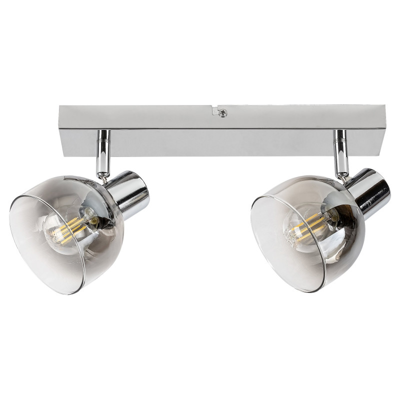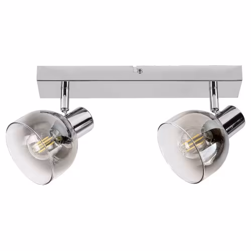 Spotul modern Tarien cu 2 becuri poate fi o alegere excelentă pentru diverse incăperi din apartamentul dvs.: il puteți monta in camera de zi, sufragerie, bucătărie sau chiar bucătărie. Corpul de iluminat cromat este completat de abajururi in formă de umbrelă, din sticlă colorată. Lampa Tarien poate fi montată pe perete cu ajutorul unei baze decorative alungite, pătrate. Această lampă poate fi folosită cu două becuri de maximum 40 W fiecare. Tipul de soclu este E14. in funcție de preferințe și locul instalării, puteți alege o sursă de iluminat albă caldă sau naturală. Datorită capetelor flexibile, puteți direcționa lumina acestei aplici după preferințe. Dimensiunile spotului Tarien cu 2 becuri sunt: lățime 300 mm, inălțime 130 mm, adancime 150 mm. Acest model este furnizat fără surse de iluminat.