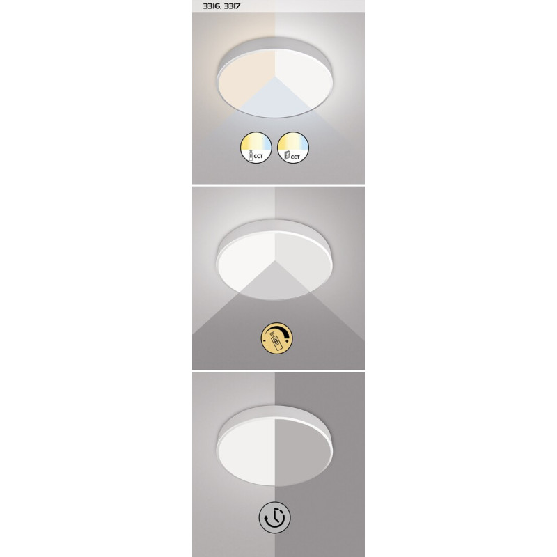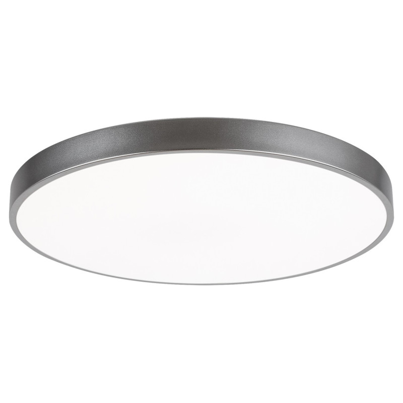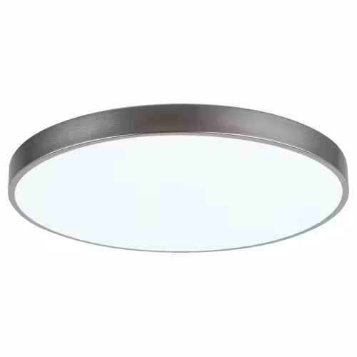 Recomandăm plafoniera rotundă Tesia celor care doresc, pentru livingul sau dormitorul modern, o lampă simplă, cu linii curate, care oferă în plus multiple funcții suplimentare. Pentru Tesia, corpul de metal argintiu este complimentat de un abajur alb de plastic. Lampa conține o sursă de lumină LED încorporată cu o putere de 60W, o intensitate luminoasă de 5.000 de lumeni și o temperatură a culorii care poate fi reglată după dorință între 3.000-6.000K cu ajutorul unui comutator de perete sau a unei telecomenzi. Durata de viață a becului este fantastică: 50.000 de ore! Tesia are și variator, adică luminozitatea sa poate fi schimbată după dorință cu ajutorul unei telecomenzi. Caracteristicile suplimentare includ o funcție de memorare, un temporizator și o funcție de lampă de veghe. Diametrul acestei plafoniere cu design extrem de subțire este de 600mm, distanța față de tavan de doar 50mm.