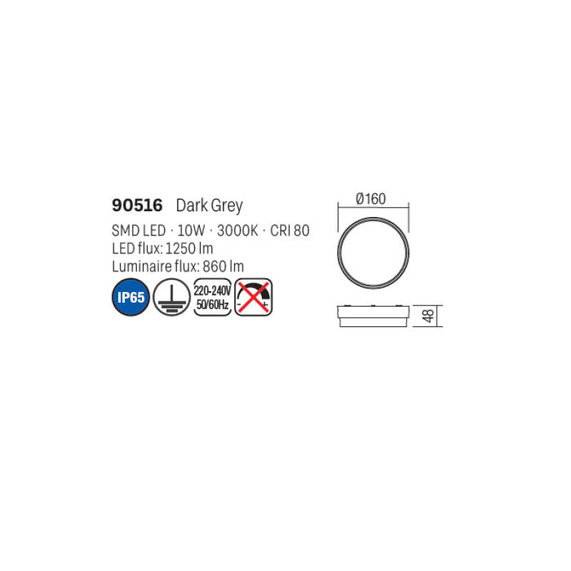 Plafoniera Urania Gri LED 10W 90516 Redo