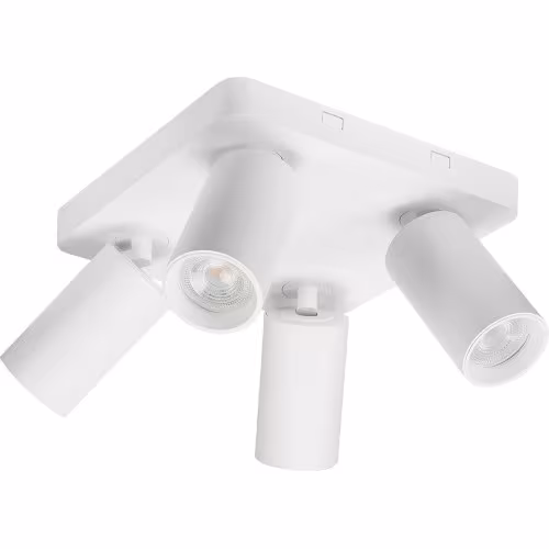 Lampa de tavan spot Rabalux Yorli cu 4 becuri este recomandată celor care, pe lângă un aspect modern, pun un accent deosebit pe eficiența iluminatului. Lampa spot elegantă de culoare albă este realizată cu un suport din aluminiu și abajururi cilindrice din plastic și poate fi montată pe tavan folosind o bază decorativă pătrată. Capetele lămpii sunt poziționate în colțurile pătrate și pot fi mișcate individual, astfel încât lumina acestora să poată fi direcționată după necesități. Cele patru capete de lampă garantează un iluminat eficient al întregii camere. Lampa spot este recomandată în principal pentru living, dormitor sau hol. Lampa de tavan spot poate fi utilizată cu patru becuri, fiecare cu o putere de până la 7 W. Tipul de priză este GU10. Lampa spot cu 4 becuri este livrată fără sursele de lumină.