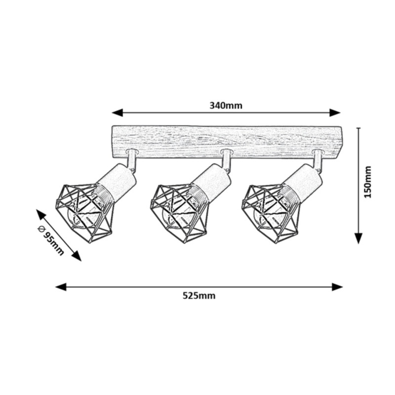 Spotul in stil industrial Zeus cu 3 becuri este recomandat pentru diverse incăperi din apartamentul dvs.: il puteți monta in camera de zi, sufragerie, bucătărie sau chiar dormitor. Lampa este construită din metal și lemn și poate fi montată pe perete cu ajutorul unei baze alungite pătrate, decorative, din stejar. Abajururile cu bare cu formă caracteristică sunt realizate din metal negru mat. Lampa Zeus poate fi folosită cu 3 becuri de maximum 40 W fiecare. Tipul de soclu este E14. in funcție de preferințe și incăperea instalării, puteți alege o sursă de iluminat albă caldă sau naturală. Datorită capetelor flexibile, acest model poate lumina eficient toată incăperea. Dimensiunile spotului Zeus cu 3 becuri sunt: lățime 525 mm, inălțime 150 mm, adancime 150 mm. Acest model este furnizat fără surse de iluminat.