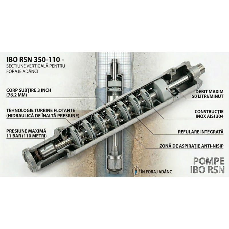 ✔ Diametru redus de 3 inch – perfectă pentru puțuri înguste