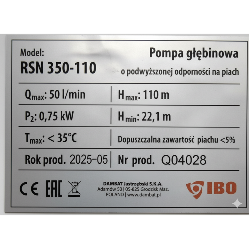 Pompa Submersibilă IBO RSN 350-110 – Soluția Imbatabilă pentru Ape cu Nisip Abundent