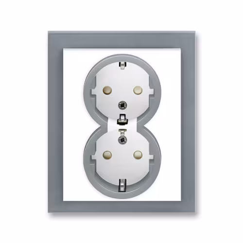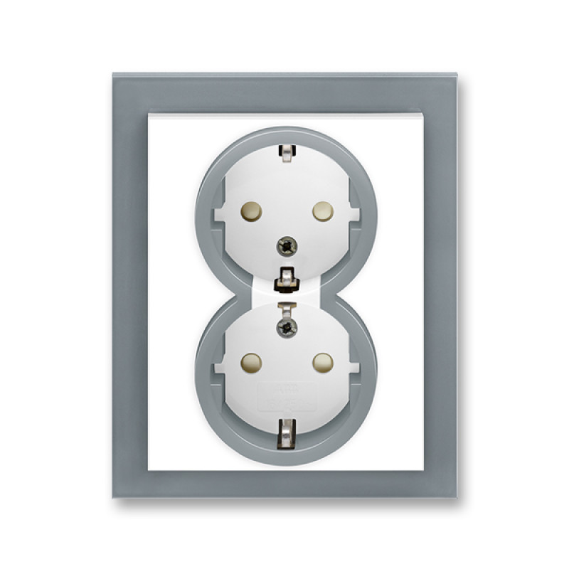 Priza dubla ST cu impamantare alb/gri fresh si protectie copii Neo ABB