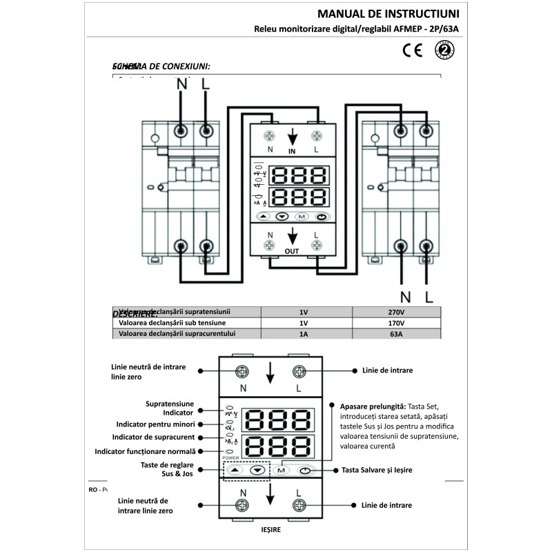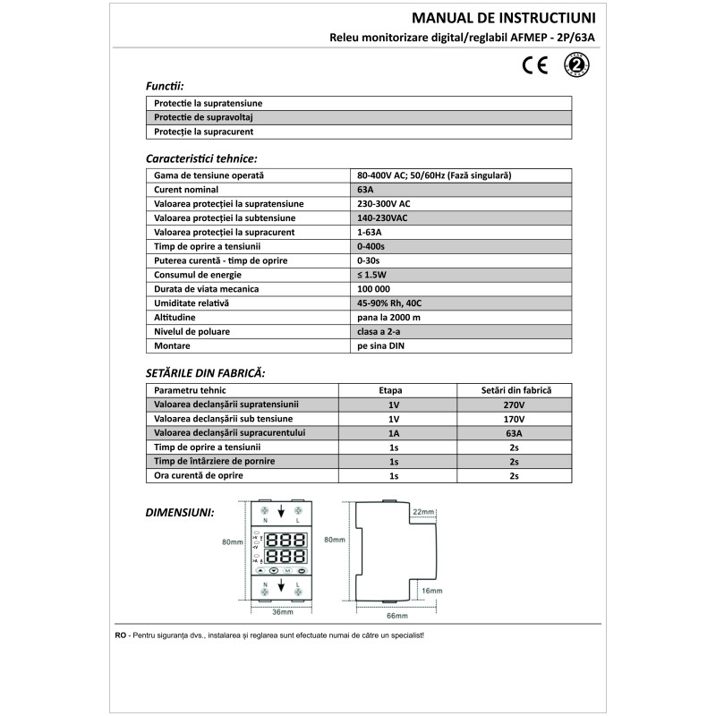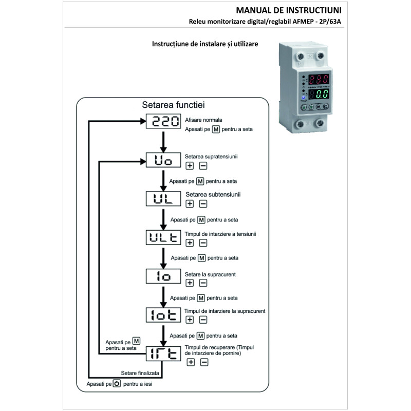 Releu monofazic Klass, AFMEP – 2P/63A, protectie supratensiune si suprasarcina, digital/reglabil