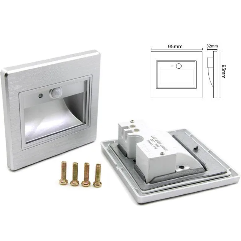 Spot Led Scara Incastrabil ,Hol 1W Argintiu cu Senzor Prezenta + Senzor Crepuscular Lumina Neutra ,IP20