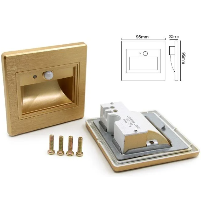 Spot Led Scara Incastrabil , Hol 1W Auriu cu Senzor Prezenta si Senzor Crepuscular Lumina Neutra ,IP20