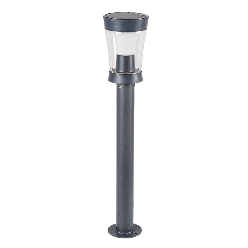 Lampa solară de podea de exterior Anders, în stil modern, este recomandată în primul rând pentru terasă sau grădină. Lampa cilindrică, lărgită înspre sus, cu un abajur transparent, este dotată cu un senzor de lumină, adică reglează luminozitatea lămpii în funcție de condiții. Fabricat în întregime din plastic, modelul gri este prevăzut cu o bază decorativă plată, rotundă, cu capul lămpii montat pe un picior cilindric. Angers are o sursă de lumină LED încorporată, cu o putere 3 W, o luminozitate de 300 lumeni cu abajur, 450 lumeni fără abajur și o durată de viață de 15 000 ore. Sursa de lumină de 4000 K emite lumină albă naturală. Bateria lămpii are o tensiune de 3,7 V și o capacitate de 2000 mAh. Dimensiunile lămpii Angers sunt următoarele: înălțime 630 mm, diametru 120 mm, diametru de instalare 100 mm. Protecția IP65 a lămpii de exterior garantează că este complet închisă și protejată împotriva materialelor solide și murdăriei, precum și protejată împotriva jeturilor de apă de presiune redusă. Intervalul ideal de temperatură de funcționare: -10 °C până la 40 °C.