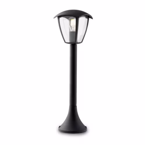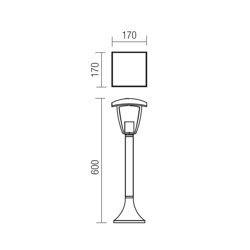 Stalp pentru exterior, structura din aluminiu turnat sub presiune, vopsita în camp electrostatic negru mat, dispersor din policarbonat transparent