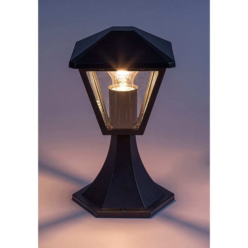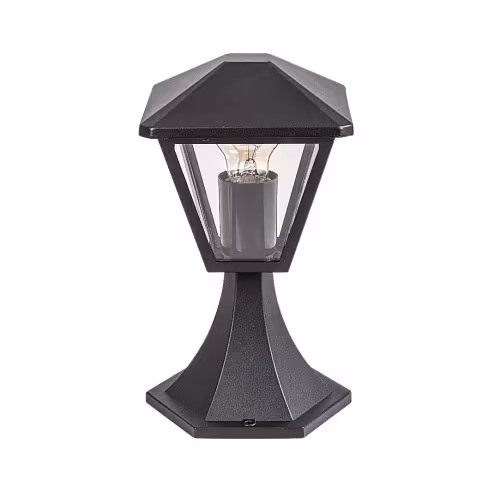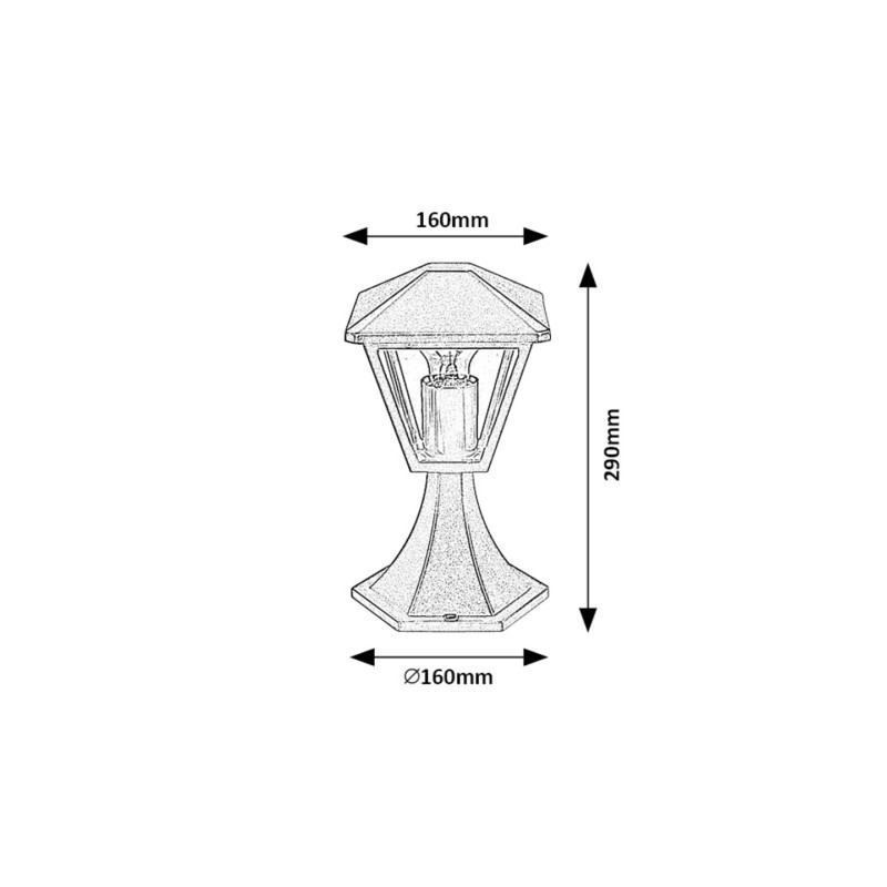 Lampa de podea de exterior Paravento este una dintre reprezentantele stilului clasic. Corpul negru al lămpii din aluminiu este completat de un abajur din sticlă transparentă care se lărgește în sus, și de către o bază stabilă care se lărgește în jos. Abajurul dreptunghiular închis este acoperit din sus de un capac în formă de pălărie. Lampa Paravento de dimensiuni mici poate fi amplasată lângă poteca din grădină, dar poate fi folosită și pentru a ilumina o plantă specială sau un pat de flori. Lampa exterioară poate fi folosită cu o singură sursă de lumină cu o putere de până la 40 W, tip soclu E27. Paravento are o lățime de 160 mm și o înălțime de 290 mm. Protecția IP44 a lămpii de grădină garantează că aceasta este protejată împotriva pătrunderii obiectelor cu diametrul de până la 1 mm, precum și împotriva stropirii cu apă din orice direcție. Lampa de podea de exterior Paravento se livrează fără sursă de lumină.