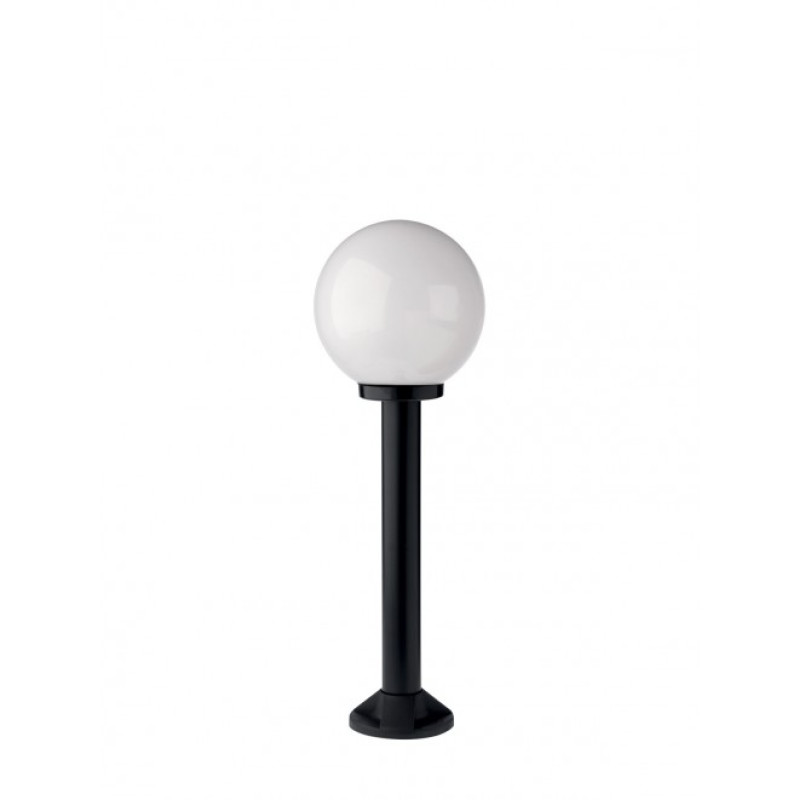 Corp de iluminat pentru exterior, pentru montaj direct pentru pardoseli sau garduri perimetrale. Corp din termoplastic armat, culoare negru cu dispersor sferic din acril opal Ø 250 mm. IP44