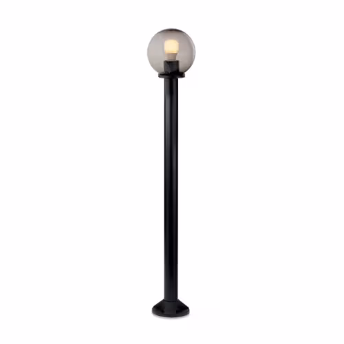Stâlp pentru exterior, din oțel zincat îmbracat în PVC, rezistent la raze UV și coroziune, cu dispersor sferic din acril fumuriu Ø 250 mm. IP44