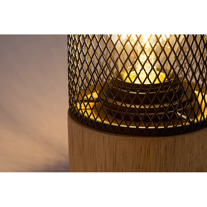 Lampa de masă Callum în stil industrial poate fi un accesoriu unic pentru camera de zi sau dormitorul nostru modern. Lampa din metal și lemn de culoarea fagului este completată de o grilă cilindrică neagră, deschisă spre sus, care filtrează ușor lumina emisă din interiorul lămpii. Partea inferioară din lemn a lămpii Callum, care creează un efect natural, formează o combinație interesantă cu abajurul de tip industrial. Lampa poate fi folosită cu o singură sursă de lumină cu o putere de până la 25 W, tip soclu E27. În funcție de gustul Dvs. și de locul în care amplasați lampa, puteți alege între o sursă de lumină albă caldă sau naturală. Dacă optați pentru prima variantă, atunci așezând lampa pe o masă mai mică în camera de zi sau pe noptieră în dormitor, putem crea o atmosferă familială și intimă. Dimensiunile lămpii de masă Callum prevăzută cu întrerupător sunt următoarele: înălțime 195 mm, diametru 95 mm, lungimea cablului 1500 mm. Acest model se livrează fără sursă de lumină.
