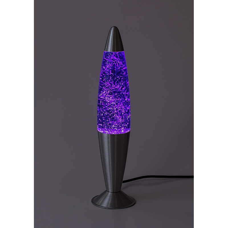 Lampa decorativă Rabalux Glitter 2 este ideală pentru cei care caută o lampă de ambianță durabilă, flexibilă și ușor de mutat. Modelul de masă are o formă distinctivă, care amintește de o rachetă. Corpul și baza decorativă sunt realizate din metal argintiu, în timp ce abajurul este fabricat din sticlă transparentă. Lampa de lavă poate fi operată printr-un comutator pe cablu și are o sursă de lumină LED încorporată care garantează o durată lungă de viață. Interiorul elegantei lămpi de design este umplut cu un lichid violet, în care plutesc particule strălucitoare de culoare argintie, oferind lămpii un aspect magic și sclipitor. Acest model va fi preferatul atât al celor mici, cât și al celor mari din familie, așa că nu va fi ușor să decizi unde să o plasezi. Din fericire, o poți muta dintr-o cameră în alta în orice moment. O recomandăm pentru living, camera copiilor și dormitor.