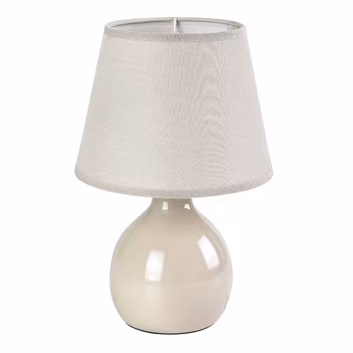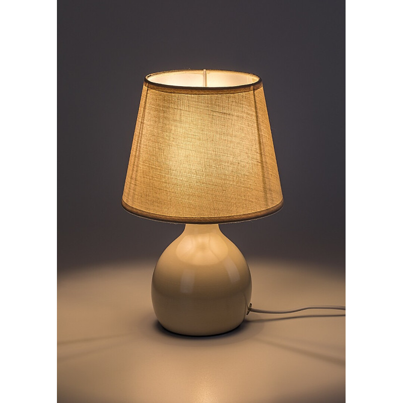Lampa de masă Rabalux Ingrid este recomandată celor care caută o lampă complementară universală, care poate fi integrată într-o gamă largă de interioare de cameră. Acest model reținut este ideal pentru dormitor, birou sau living: o puteți plasa pe o masă sau pe noptieră. Suportul este realizat din ceramică bej, iar abajurul este din material textil de aceeași culoare. Abajurul se lărgește ușor spre partea de jos și este deschis la partea superioară și inferioară. Datorită culorii sale luminoase, transmite multă lumină, făcând acest model potrivit pentru utilizarea ca lampă de citit. Poate fi utilizată cu un singur bec cu o putere de până la 40 W. Tipul de priză este E14. Lampa de noapte poate fi operată printr-un întrerupător pe cablu. Este livrată fără sursa de lumină.