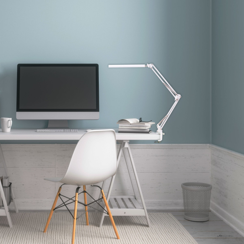Veioza LED Armstrong KL148012 este un corp de iluminat pentru interior ce imbina cu succes utilitatea cu estetica, astfel poate aduce un plus de eficienta in iluminarea diverselor spatii de lucru sau lectura. Cu un design industrial, veioza este construita dintr-un brat metalic alb, ceea ce ii confera un aspect robust si industrial. Bratul sau lung si subtire poate fi reglat si pozitionat in functie de nevoile dumneavoastra, astfel incat sa puteti directiona lumina unde aveti nevoie. Corpul de iluminat este prevazut cu LED cu o putere maxima de 11W si o intensitate luminoasa de 1160lm (dimabila). Temperatura de culoare poate fi modificata in functie de preferinta de la o lumina calda, relaxanta (3000 K), la o lumina neutra (4500 K) sau rece, energizanta (5000 K). Veioza Armstrong se asaza cu usurinta pe un corp de mobilier precum noptiera, comoda sau birou, fiind ideala pentru camera de odihna, birou, living sau hol. Detaliile o incadreaza cu usurinta intr-un spatiu amenajat in stil modern, iar cromatica neutra determina o adaptare rapida in orice camera
