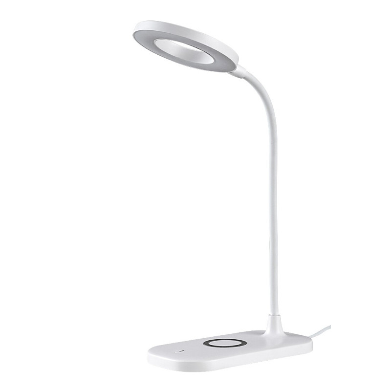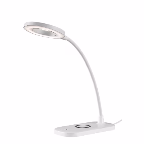 Cu numeroasele sale funcții suplimentare, lampa de masă modernă Hardin va fi un însoțitor indispensabil în oficiu sau la orice birou. Lampa inteligentă în întregime din plastic este realizată în alb cu abajur alb, capul lămpii fiind în formă de gogoașă, iar baza decorativă dreptunghiulară are colțurile rotunjite. Hardin are o sursă de lumină LED încorporată aparținând clasei energetice G, cu o putere de 5 W, o luminozitate de 210 de lumeni cu abajur, 720 de lumeni fără abajur și cu o durată de viață de 20.000 ore. Temperatura de culoare a lămpii poate fi modificată între 2700 și 6000 K, adică putem seta lumină albă caldă, naturală sau rece. Aceasta din urmă este deosebit de potrivită pentru lucru și învățare. În plus, lampa este dimabilă, adică luminozitatea sa poate fi de asemenea modificată. Temperatura de culoare și luminozitatea pot fi reglate cu ajutorul comutatorului tactil amplasat pe bază. Hardin are un încărcător wireless și poate fi încărcat prin cablu USB. Dimensiunile lămpii masă sunt următoarele: înălțime 290 mm, diametru 100 mm, adâncime de instalare 165 mm.