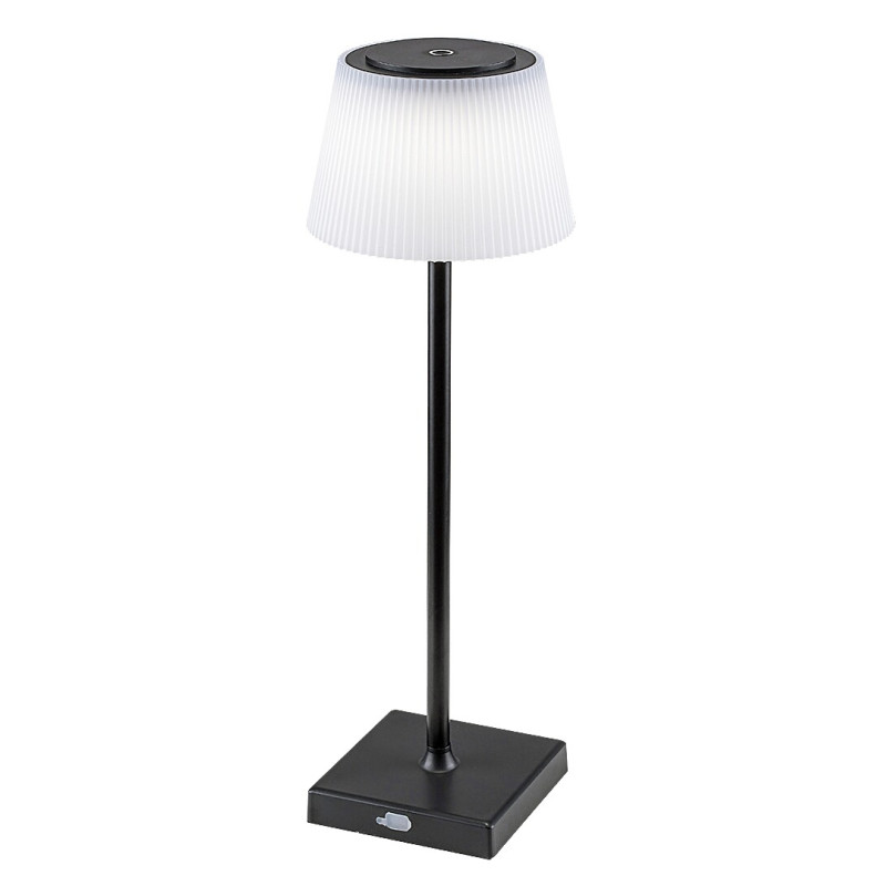 Lampa de masă Taena, în stil modern, oferă mult mai mult decât un model obișnuit conceput pentru un scop asemănător. Lampa prevăzută cu funcții suplimentare este o alegere excelentă pentru camera de zi sau dormitor. Fabricat din metal de culoare neagră, modelul este completat de un abajur din plastic alb, care amintește de o fustă plisată și se lărgește ușor în jos, precum și de o bază decorativă pătrată. Taena are o sursă de lumină LED încorporată, cu o putere de 4 W și o durată de viață de 25 000 ore. Fluxul luminos al corpului lămpii este de de 200 lumeni, fluxul luminos al sursei de lumină este de 330 lumeni. Temperatura de culoare a sursei de lumină poate fi reglată între 3000 și 5000 K, iar în plus și luminozitatea poate fi modificată. Ambele funcții pot fi operate cu ajutorul unui comutator tactil. Lampa are o baterie de 3,7 V cu o capacitate de 1800 mAh și poate fi încărcată prin intermediul unui cablu USB. Protecția IP44 a lămpii garantează că aceasta este protejată împotriva pătrunderii particulelor solide cu diametrul mai mare de 1 mm, precum și împotriva stropirii cu apă din orice direcție. Dimensiunile lămpii de masă sunt următoarele: înălțime 380 mm, diametru 130 mm, diametru de instalare 95 mm.