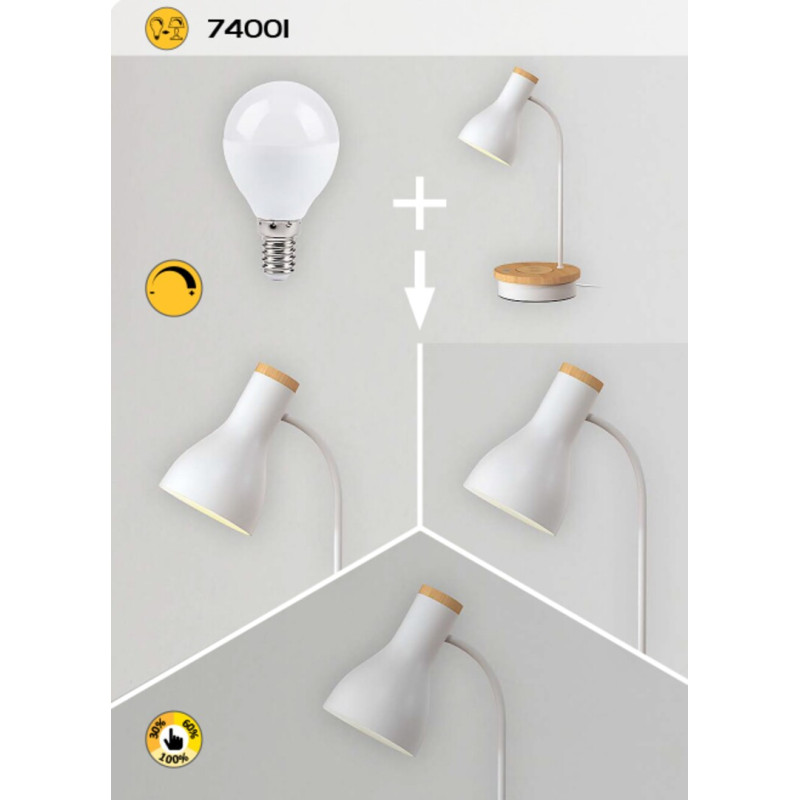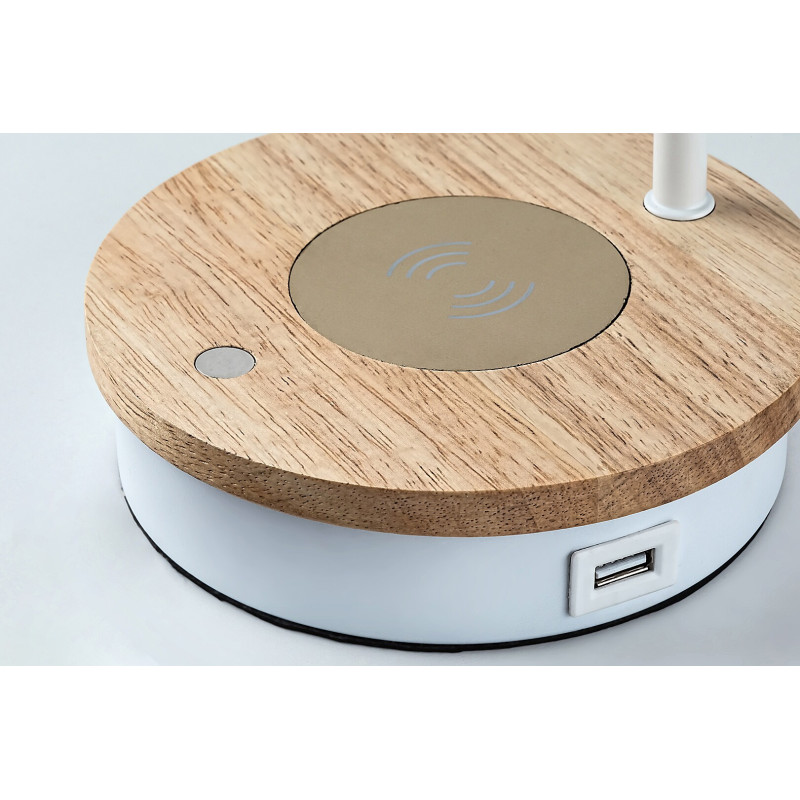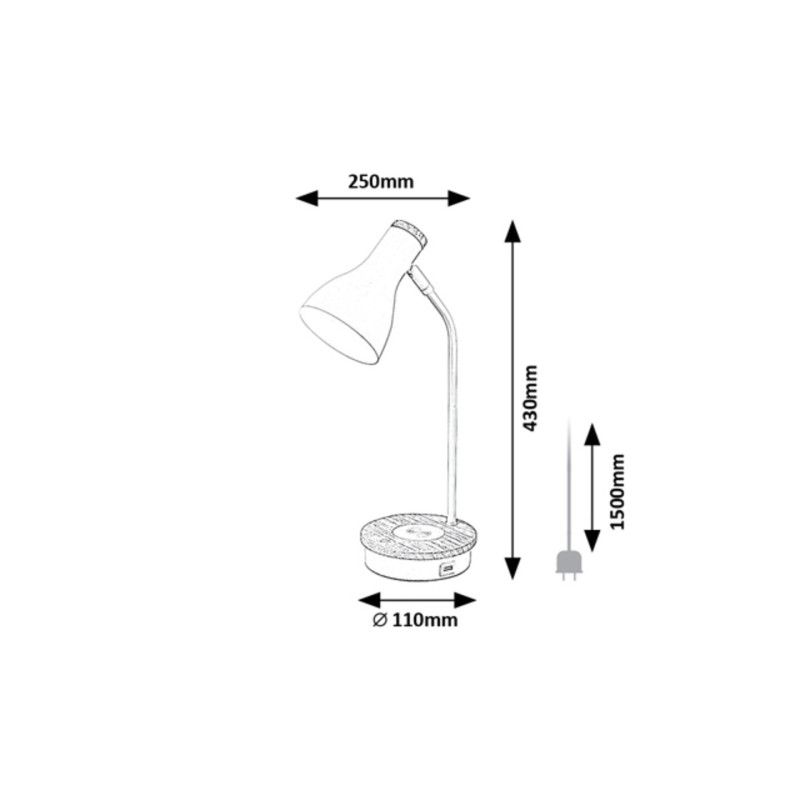 Cu aspectul său elegant și natural, lampa de masă Mosley, în stil modern, este o alegere excelentă pentru un birou din orice oficiu sau cameră de copii. Modelul din metal alb mat și lemn este completat de o tijă subțire, curbată în sus, un abajur cilindric lărgit în jos și o bază decorativă cu comutator tactil. Mosley poate fi folosită cu o singură sursă de lumină cu o putere de până la 25 W tip soclu E14. Pentru muncă și studiu, vă recomandăm o sursă de lumină albă rece pentru a facilita menținerea concentrării. Lampa este dimabilă cu ajutorul comutatorului tactil, adică luminozitatea acesteia poate fi reglată (30, 60 sau 100%). Mosley este prevăzut, de asemenea, cu un încărcător wireless și un port USB pentru a vă încărca telefonul mobil, de exemplu. Dimensiunile lămpii de masă Mosley sunt următoarele: lățime 250 mm, înălțime 430 mm, diametru 110 mm, lungime cablu 1500 mm. Acest model se livrează fără sursă de lumină.