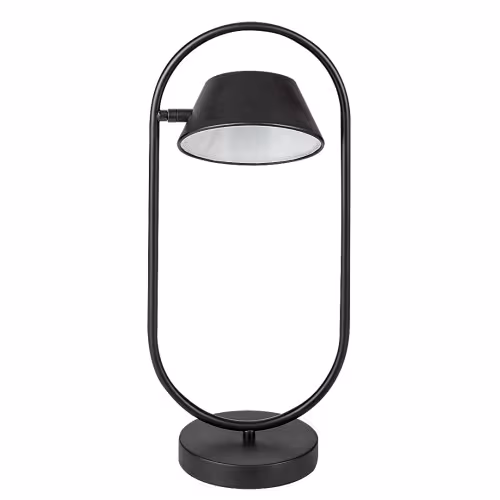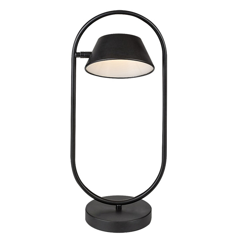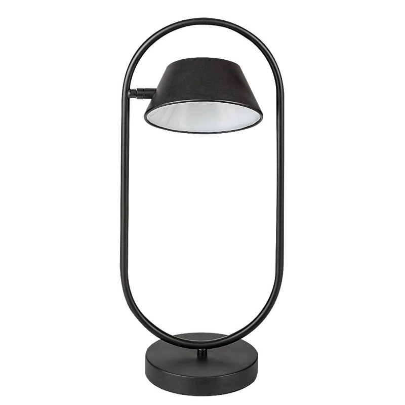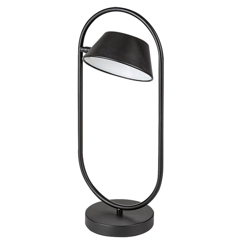 Lampa de masă Odiss, în, în stil modern, poate fi amplasată în camera de zi sau în dormitor, pe orice masă sau noptieră. Modelul negru realizat din metal este completat de un abajur din plastic alb, iar lampa stă pe o bază decorativă rotundă. Capul trapezoidal inversat al lămpii este atașat părții interioare a cadrului alungit fixat pe baza decorativă. Unghiul capului lămpii este reglabil, astfel încât puteți direcționa lumina acesteia după preferințe. Odiss are o sursă de lumină LED încorporată aparținând clasei energetice G, cu o putere de 6 W, o luminozitate de 390 de lumeni cu abajur, 470 de lumeni fără abajur și cu o durată de viață într-adevăr excelentă: 36 000 ore! Sursa de lumină cu o temperatură de culoare de 3000 K emite o lumină albă caldă care ajută la crearea unei atmosfere intime și primitoare, fiind de asemenea ideală pentru relaxare. Dimensiunile lămpii de masă Odiss, prevăzută cu comutator sunt următoarele: lățimea 215 mm, înălțime 490 mm, diametrul abajurului precum și a bazei decorative 150 mm, înălțime abajur 70 mm, lungimea cablului 1500 mm.