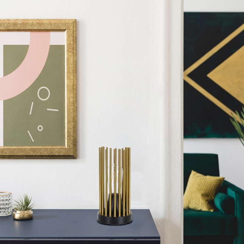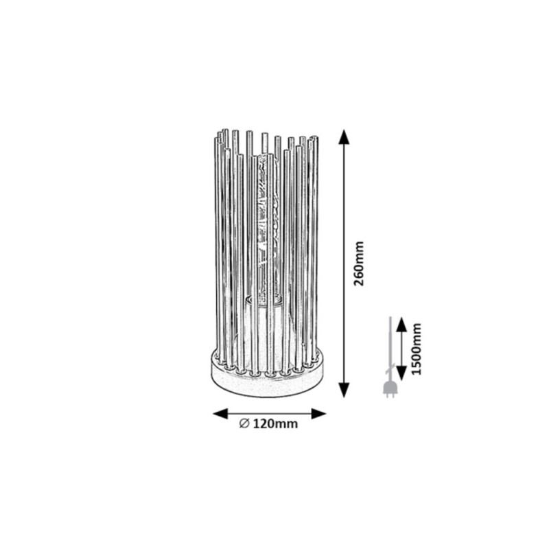 Lampa de masă Roxas, în stil modern, este un model propriu Rábalux, care, cu designul său special și tonurile sale calde, poate fi o piesă elegantă și confortabilă a camerei de zi. Datorită spațiului necesar redus, poate fi așezat cu ușurință pe o masă mai mică sau chiar pe un raft. Forma cilindrică a lămpii de culoare neagră mată realizată în întregime din metal este alcătuită de tijele subțiri de cupru, iar baza decorativă mică și rotundă este neagră. Deoarece sursa de lumină este complet vizibilă prin abajur, merită să folosiți acest model cu un bec estetic, cu o formă diferită de cea obișnuită. Roxas poate fi folosită cu o singură sursă de lumină cu o putere de până la 40 W, tip soclu E27. Dacă doriți să realizați o atmosferă familială și intimă, vă recomandăm să folosiți această lampă cu un bec care emite lumină albă caldă. înălțimea lămpii de masă Roxas prevăzută cu cablu textil este de 260 mm, diametru 120 mm, lungimea cablului 1800 mm. Acest model se livrează fără sursă de lumină.