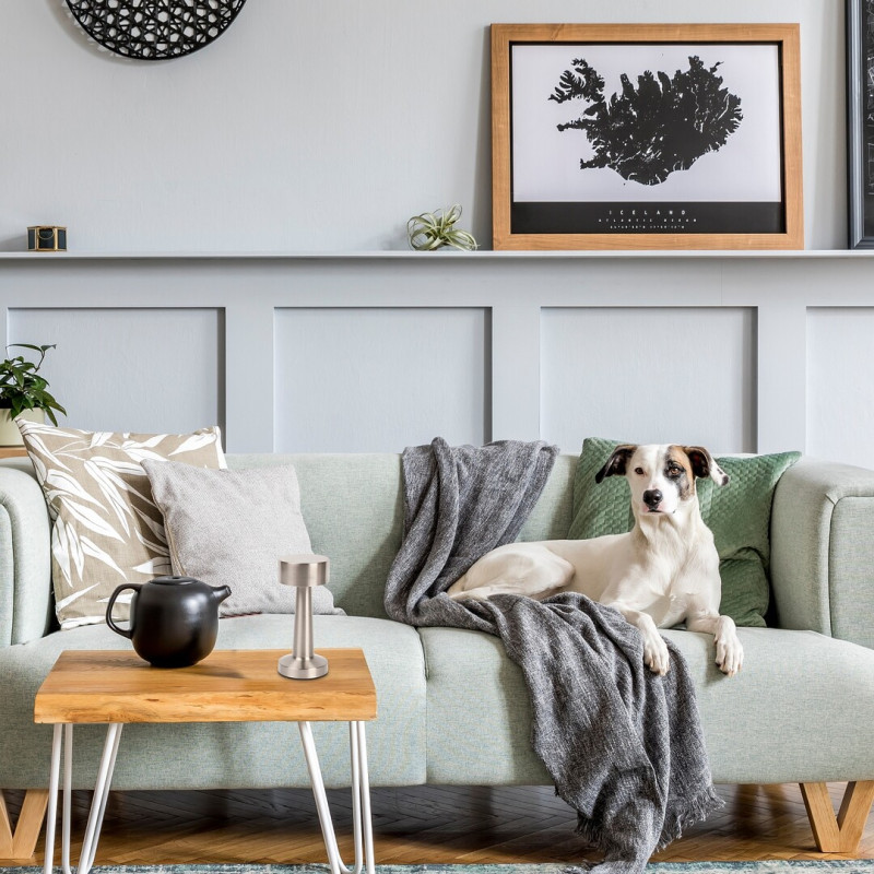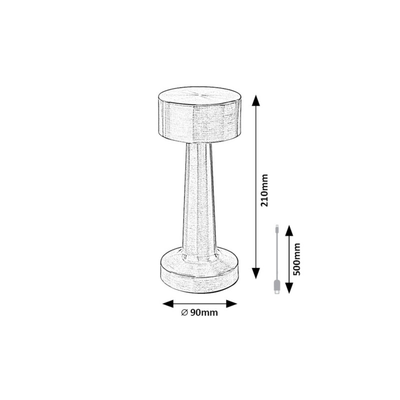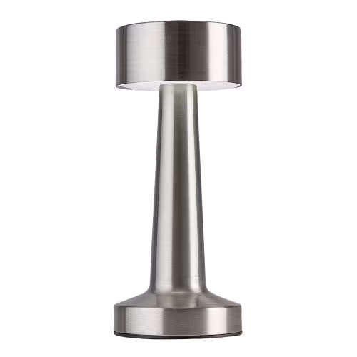 Cu aspectul său modern și designul său unic, lampa de masă Senan poate fi un accesoriu elegant și versatil pentru aranjamentul camerei de zi sau dormitorului Dvs. Corpul lămpii din metal de culoare argintie este completat de un abajur din plastic alb, în timp ce tija robustă se termină într-o bază decorativă rotundă. Tija se îngustează ușor în sus și susține un cap de lampă cilindric. Senan de domensiuni mici are o sursă de lumină LED încorporată cu o putere de 2,7 W, o luminozitate de 40 de lumeni cu abajur, 60 de lumeni fără abajur și cu o durată de viață de 20.000 ore. Temperatura de culoare a lămpii de masă poate fi modificată cu ajutorul unui comutator tactil: putem seta 3000, 4000 sau 6000 K, adică lumină albă caldă, naturală sau rece, în funcție de gustul și dispoziția noastră de moment. Senan are și o baterie de 3,7 V cu o capacitate de 1200 mAh, putând fi încărcată prin intermediul unui cablu USB. Dimensiunile lămpii de masă sunt următoarele: înălțime 210 mm, diametru 90 mm, lungimea cablului 500 mm.