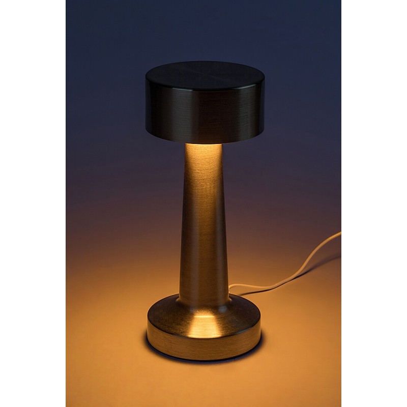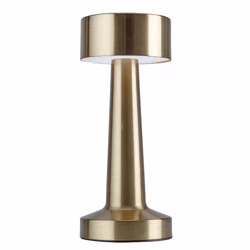 Cu aspectul său elegant și designul său unic, lampa de masă Senan poate fi un accesoriu elegant și versatil pentru aranjamentul camerei de zi sau dormitorului Dvs. modern. Corpul lămpii din metal de culoare aurie este completat de un abajur din plastic alb, în timp ce tija robustă se termină într-o bază decorativă rotundă. Tija se îngustează ușor în sus și susține un cap de lampă cilindric. Senan de domensiuni mici are o sursă de lumină LED încorporată cu o putere de 2,7 W, o luminozitate de 40 de lumeni cu abajur, 60 de lumeni fără abajur și cu o durată de viață de 20.000 ore. Temperatura de culoare a lămpii de masă poate fi modificată cu ajutorul unui comutator tactil: putem seta 3000, 4000 sau 6000 K, adică lumină albă caldă, naturală sau rece, în funcție de gustul și dispoziția noastră de moment. Senan are și o baterie de 3,7 V cu o capacitate de 1200 mAh, putând fi încărcată prin intermediul unui cablu USB. Dimensiunile lămpii de masă sunt următoarele: înălțime 210 mm, diametru 90 mm, lungimea cablului 500 mm.