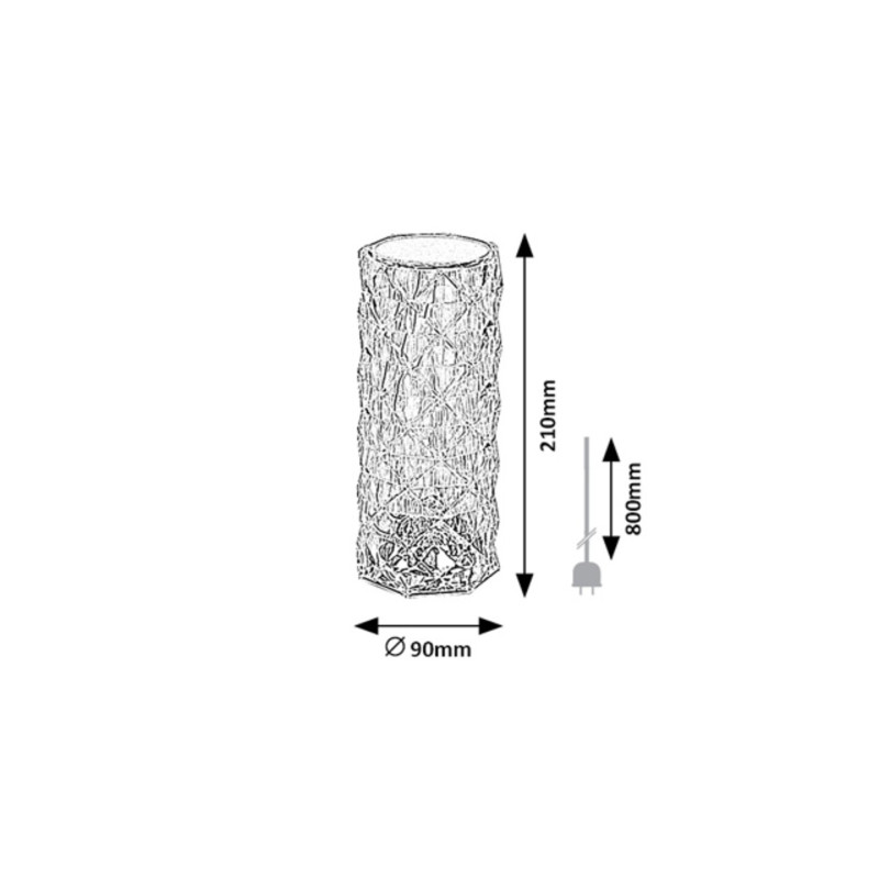 Lampa decorativă de masă Siggy poate fi o piesă confortabilă și elegantă în decorul camerei Dvs de zi. Acest model realizat complet din plastic, în formă cilindrică și transparentă, poate fi așezat pe o masă inferioară sau pe un raft pentru a contribui la o atmosferă plăcută în casă cu lumina sa solidă. Lampa Siggy, de o claritate cristalină, are o sursă de lumină LED încorporată, cu o putere de 1,5 W, o luminozitate de 45 de lumeni și o durată de viață de 10.000 de ore. Acest model decorativ vine, de asemenea, cu un comutator tactil și o telecomandă - aceasta din urmă poate fi setată pentru iluminare RGB, astfel încât să puteți schimba culorile după bunul plac. Lampa poate fi încărcată prin cablu USB și poate fi, de asemenea, alimentată cu baterii. Bateria are o tensiune de 3,7 V și o capacitate de 800 mAh. Lampa de masă decorativă Siggy are o înălțime de 210 mm, diametru 90 mm, lungimea cablului 800 mm.
