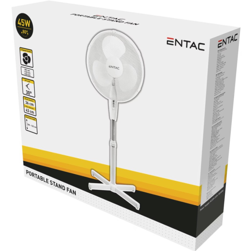 Ventilator cu picior, 45W, 36cm diametru, 3 trepte viteza, Alb, Entac